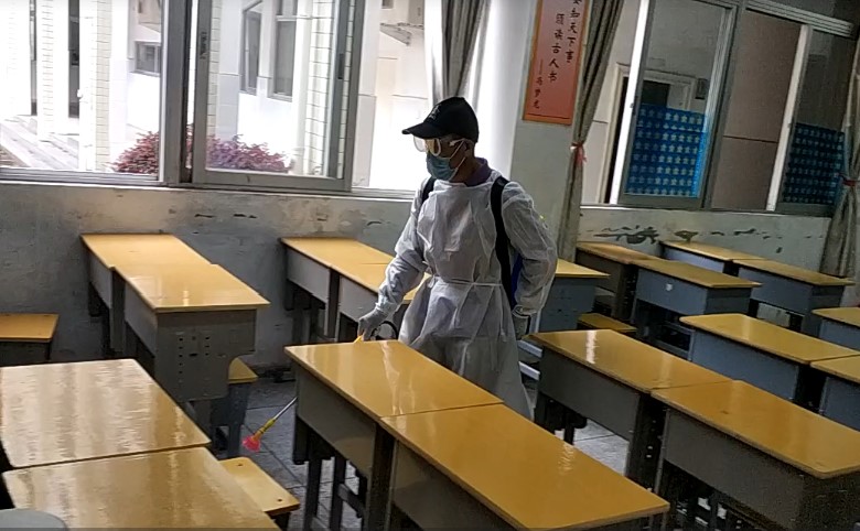 消杀人员对教室进行消杀