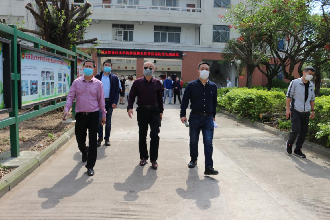 为充分落实宁德市教育局《关于做好高校和中职学校开学返校各项工作的通知》文件要求,做实做细学校疫情防控和开学前各项准备工作,进一步检验学校疫情防控工作方案的科学性和可操作性、使一日流程清晰化、规范化,提高学校防范和应急处置能力,充分做好师生返校准备,4月30日上午,福安职校在3月27日疫情防控演练的基础上再次组织开展了新冠肺炎疫情防控应急演练。福安市教育局党组书记、局长林强、福安市政府教育督导室主任陈锦华、教育局相关股室负责人及兄弟学校校长应邀到场指导,学校全体行政班子、后勤人员、毕业班班主任及任课教师、特邀民警、坂中卫生院医生等人员参加演练。