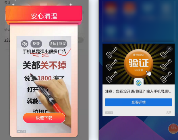 这两类APP通过瞄准用户们需要清理手机、连接WIFI等需求,骗取用户手机权限,实现现各种花式弹出广告的终极目的。