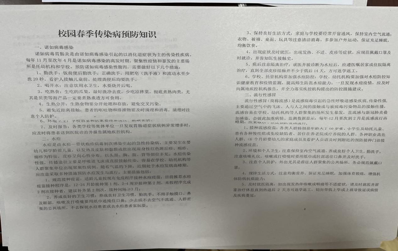 冬去春来,随着天气逐渐转暖,校园里呈现出一派生机勃勃、春意盎然的景象。春季是传染性疾病的多发季节,且大多都是呼吸道传染病,可通过空气、短距离飞沫或接触呼吸道分泌物等途径传播。