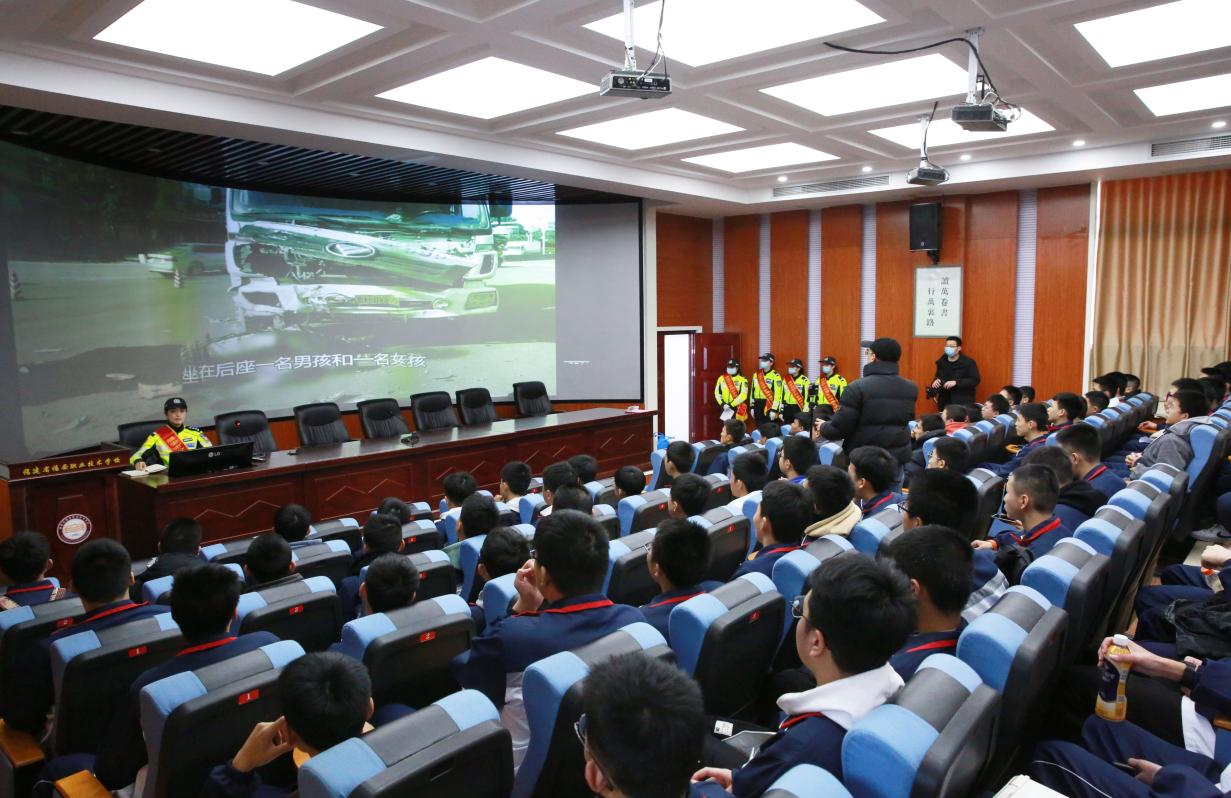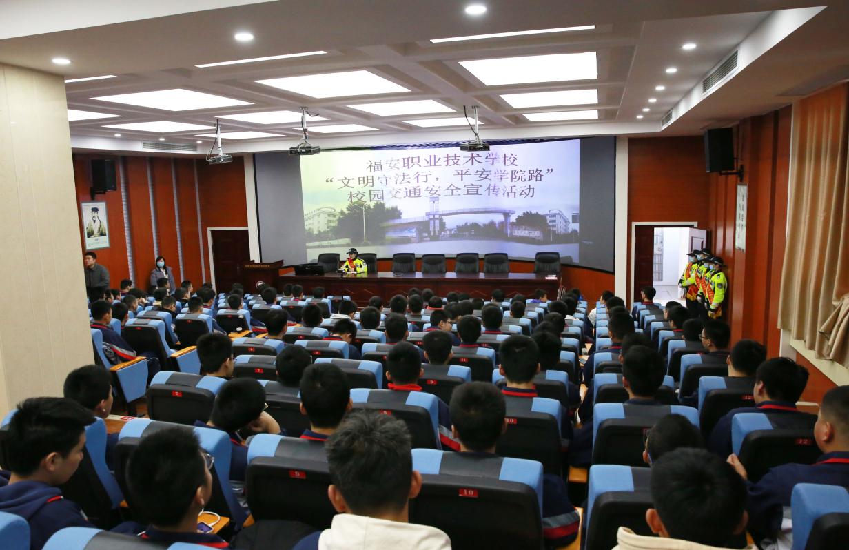 为进一步做好道路交通安全常识的宣传教育,提高学生交通安全意识和交通文明素质,预防道路交通事故发生,让同学们高高兴兴上学,平平安安回家。福安职业技术学校本着以人为本、以防为主的原则,联合交警大队女子护学岗中队到校开展“文明守法行,平安学院路”交通安全宣传活动。