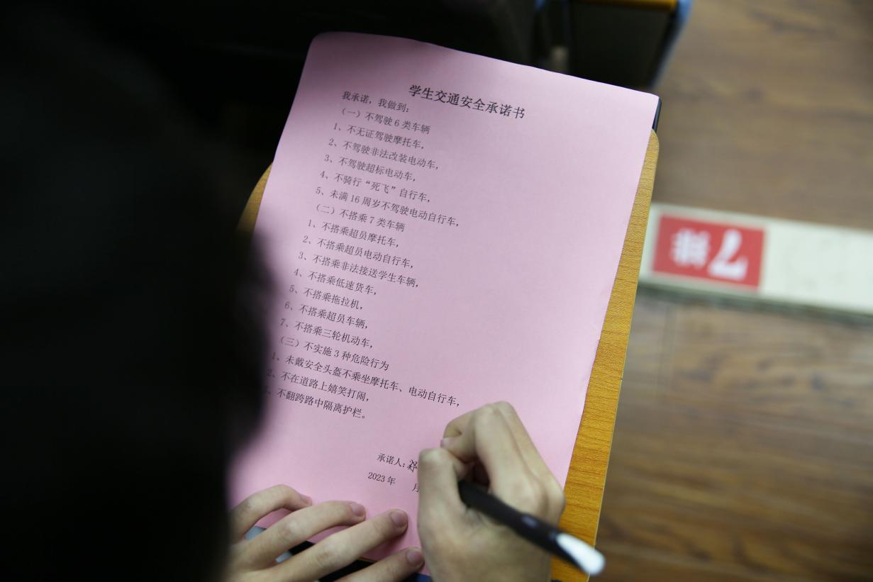签字并宣读学生交通安全承诺书