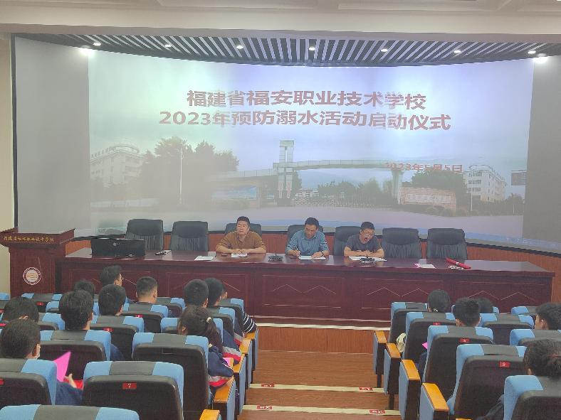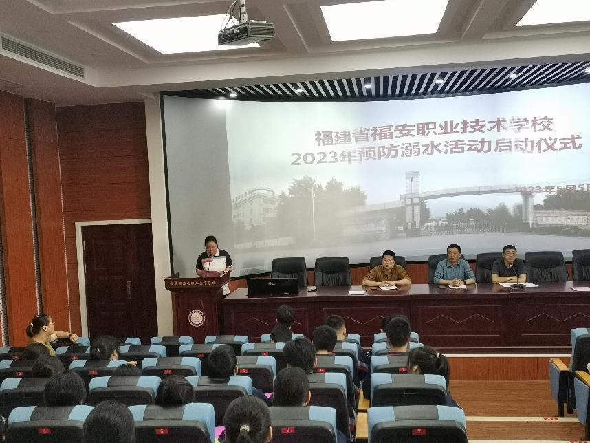 为认真贯彻落实福安市教育局防溺水相关文件及会议精神,进一步加强学校防溺水安全工作,提高学生的自护自救能力,避免溺水事故发生,2023年5月5日下午,福建省福安职业技术学校举行“珍爱生命,预防溺水”活动启动仪式。本次活动由校安保处主任倪国宝主持,副校长赵攀、政教处负责人李熹参与会议。
