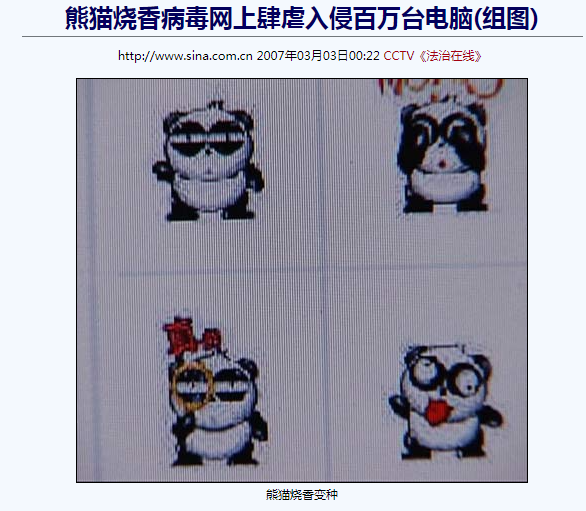 1998年春天的梅利莎病毒事件,1998年夏天的CIH病毒事件,1999年的爱虫病毒事件,2004年的震荡波病毒事件,2007年的熊猫烧香病毒事件,2017年的勒索病毒事件……
