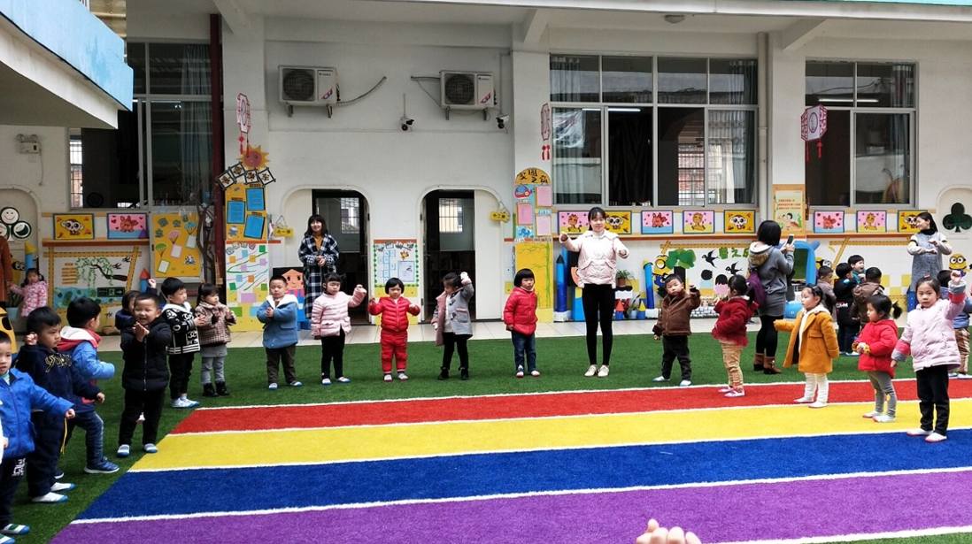 图(1):杨杰同学在实习幼儿园指导小朋友课间活动