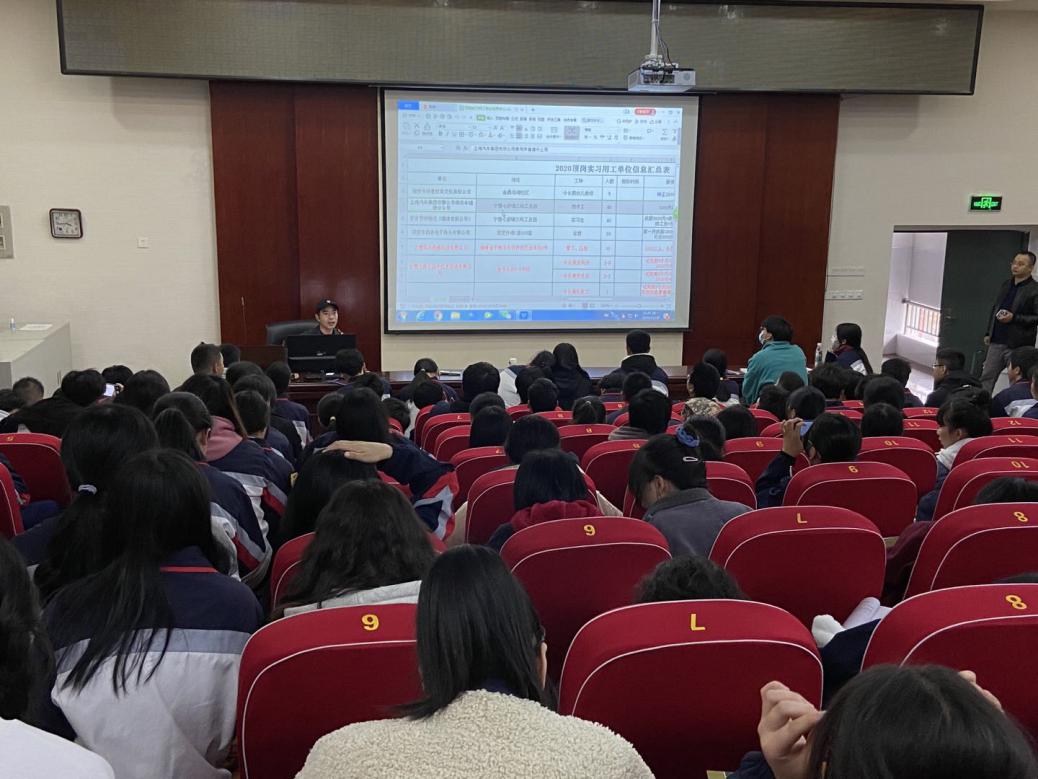 2020年12月28日,在阶梯教室举行2018级学生顶岗实习培训会,参会人员有:刘清生主任、陈泽华副主任、郑林靓老师和18级计网、计应、会计、美术等7个专业的学生。