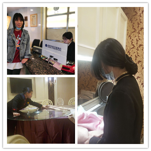旅游班的班主任们到酒店巡查学生顶岗实习情况。在巡查过程中,对学生们近期的实习情况进行了了解,并对学生在实习过程中遇到的一些问题进行了指导。其中有一小部分同学近期有畏难情绪想离职,班主任们也对这些学生进行安抚和劝解。最后,班主任们再次强调实习期间一定要端正态度,本着去学习的心态,认真刻苦的做好实习期间的各项工作。
