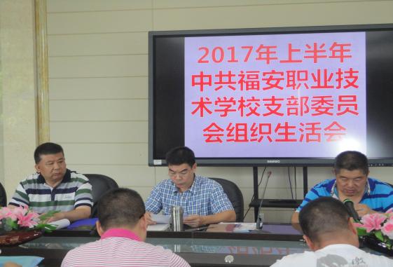为推进“两学一做”学习教育的常态化制度化,按照福安市教育局党组、党委的安排部署,福安职业技术学校支部于2017年7月27日上午在校会议室召开了2017年上半年组织生活会。会议由吴国武副书记主持,校级班子成员、党支部支委成员、各党小组组长参加了会议。会议第一阶段李成文校长、书记代表学校班子作了对照检查发言,查摆出了2017年上半年班子工作中存在的问题,并分析了原因,提出了整改的措施,随后与会的校级班子成员及支委分别进行了对照检查发言;第二阶段与会同志开展批评与自我批评,同志们针对自己和别的同志在工作中存在的缺点与不足坦诚布公地进行交流与提醒,真诚提意见,真心为发展,会议取得了良好的成效。(党支部供稿)