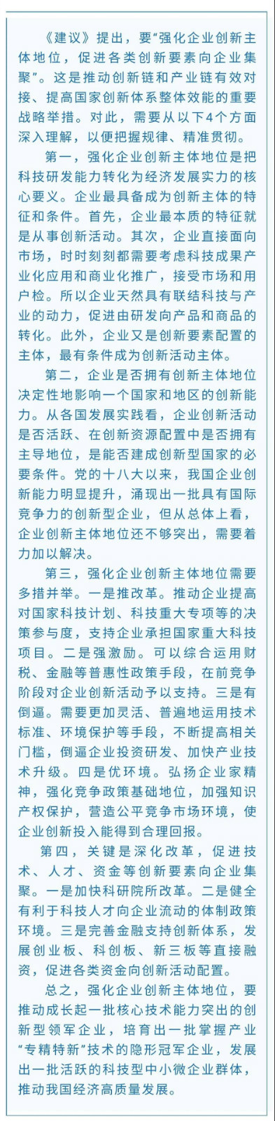 怎样理解强化企业创新主体地位,促进各类创新要素向企业集聚?
