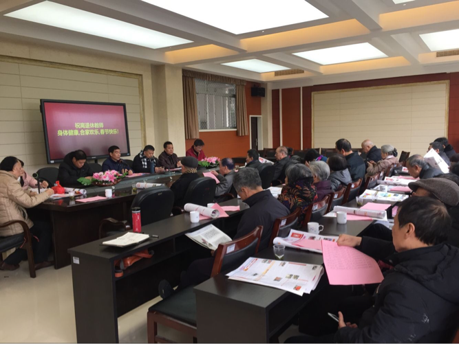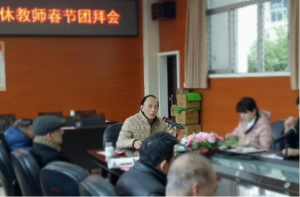 团拜会上,退协分会会长郭寿生老师宣读了春节慰问信,并向大家汇报了2017年年度工作总结,周飞龙、朱税税两位老教师分别讲述了自己的退休后的生活,强调了“老有所为”!