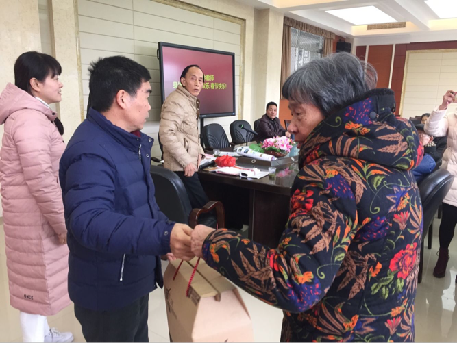 团拜会上,李校长还代表学校分别为七十和八十的老寿星送去礼品和祝福,给每位老教师分发了春节慰问品。
