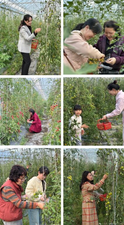 当日下午,女教职工们齐聚学校西大门,自驾前往目的地。一路上,大家满怀期待奔赴田园,抵达弘丰果蔬合作社后,连片的果蔬大棚映入眼帘,红彤彤的西红柿、晶莹剔透的圣女果挂满枝头,生机盎然。卸下教案与粉笔的辛劳,老师们化身田园“采撷者”,穿梭于藤蔓之间,亲手摘下饱满的果实,体验农耕收获的喜悦。欢声笑语在大棚里回荡,清新的果香与春日的暖意交织,身心得到了极大的放松。
