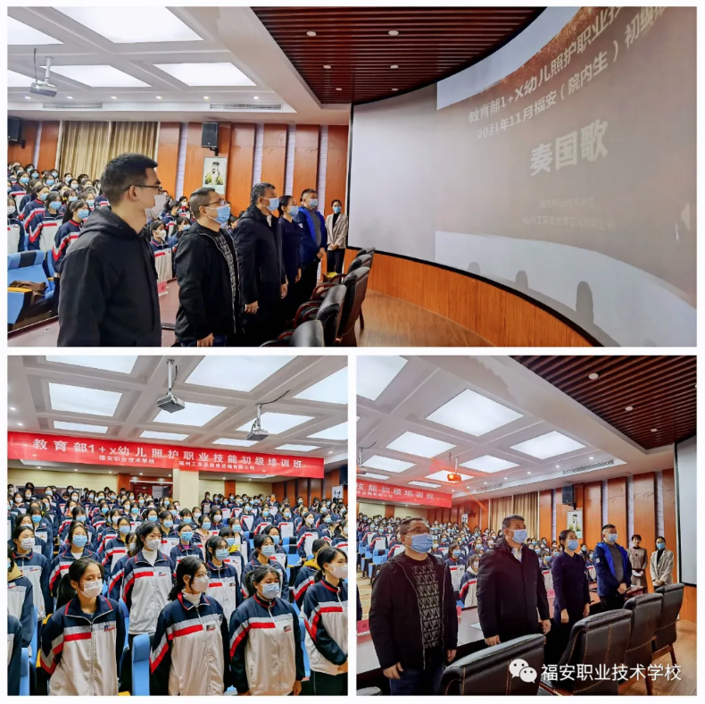 福安职业技术学校陈强副校长致辞,对福安“幼儿照护”证第一批的学员提出了要求与期望,并明确指出随着国家相关政策的落实,政府各项配套措施的推进,托育的春风迎面而来,托育的号角已吹响,同学们是黄埔军校的第一期学员,未来,在学校的发展历程上会有你们光辉一刻,那从现在开始,就让我们跟着党走,绘托育蓝图,做一名合格的幼儿照护者!
