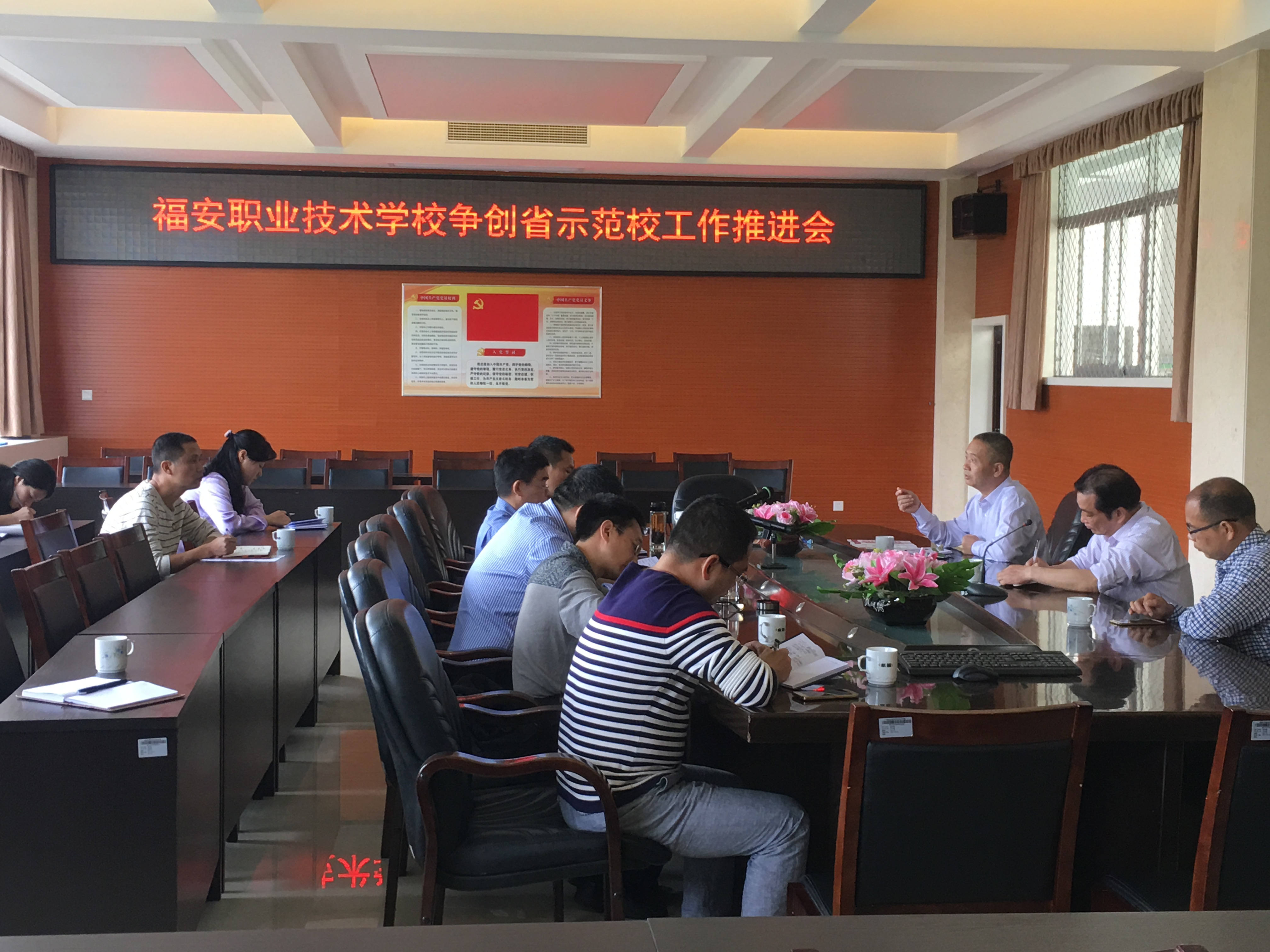 2017年4月20日,福安市教育局余仕忠督学、林建峰股长、赵晓春一行三人到福安职业技术学校进行调研和指导工作,学校全体班子成员参加了工作指导会议。