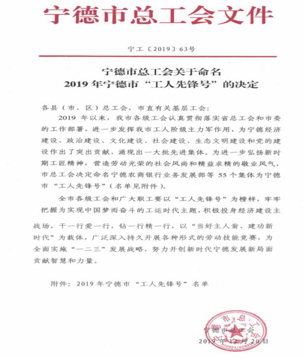 热烈祝贺福安职业技术学校教研室荣获宁德市“工人先锋号”荣誉称号