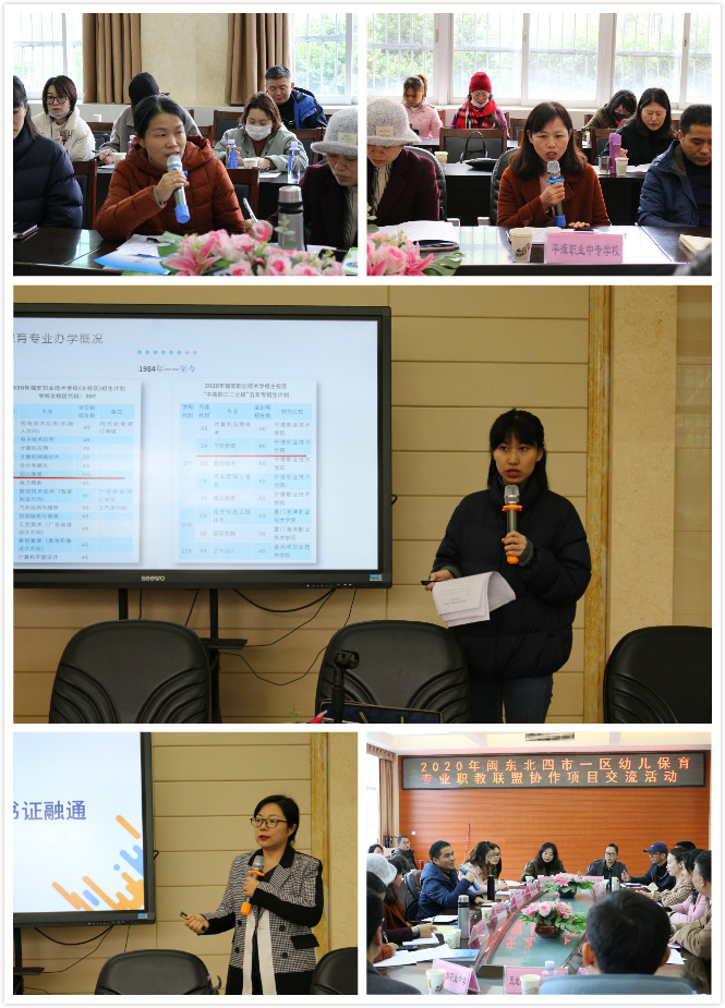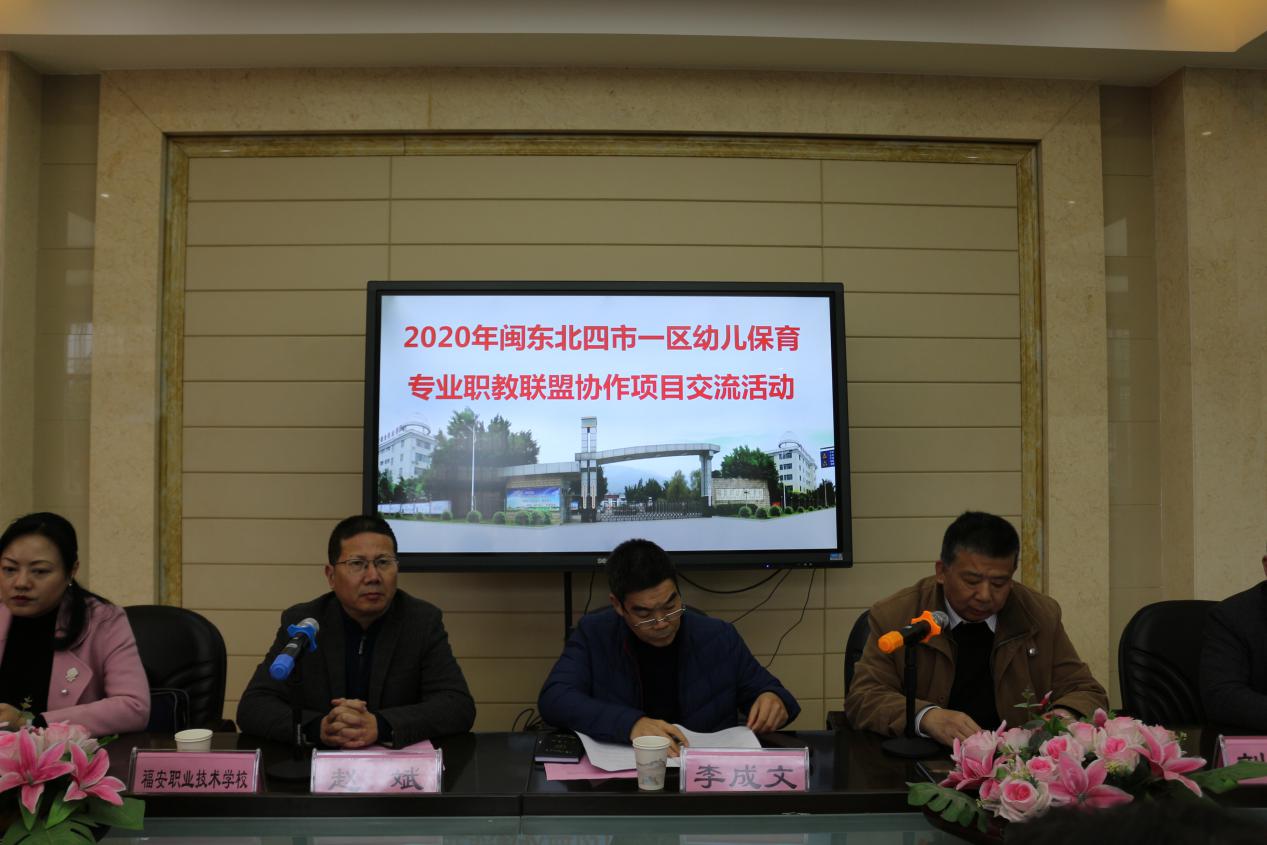 为进一步推进落实《闽东北协同发展区职业教育交流合作框架协议》(榕教综〔2020〕128号)文件精神,探索幼儿保育专业的人才培养目标、专业师资配备、课程体系建设和技能实践教学等人才培养方案。积极发挥福安职业技术学校的辐射、带头作用,努力提高各联盟学校幼儿保育专业的整体水平,2020年12月25日上午,2020年闽东北四市一区幼儿保育专业职教联盟协作项目交流活动在福安职业技术学校召开。福安市人民政府教育督导室李成文正科级督导员,福安职校、福州文教职专、连江职专、宁德职专、南平职专、莆田职校、闽侯职专、平潭职专、福安民职中等幼儿保育专业联盟成员单位的代表、骨干教师,幼儿保育企业专家齐聚一堂,共谋发展机遇、促进合作共赢。会议由福安职校陈强副校长主持。
