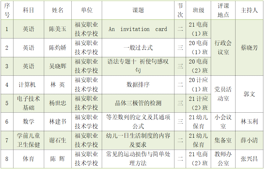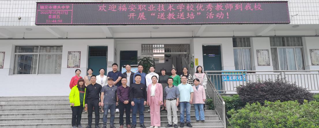 2022年5月27日,我校12名骨干教师应邀来到福安市潭头职业中学开展送教送培活动。本次活动在曾柳娟副校长的带领下,选派了宁德市中职(专业)学科带头人林建书、林英、陈美玉、陈辉以及骨干教师杨世忠、吴晓辉、谢石生、陈灼娇等8位教师,为福安市潭头职业中学学生带去了8节公开课,宁德市中职教学名师曾柳娟副校长做了题为《中职乐理课程线上与线下结合的教学改革探索与实践》的讲座,课堂教学精彩纷呈、教研交流研讨积极热烈,整个过程有序有趣,开启了思维碰撞。