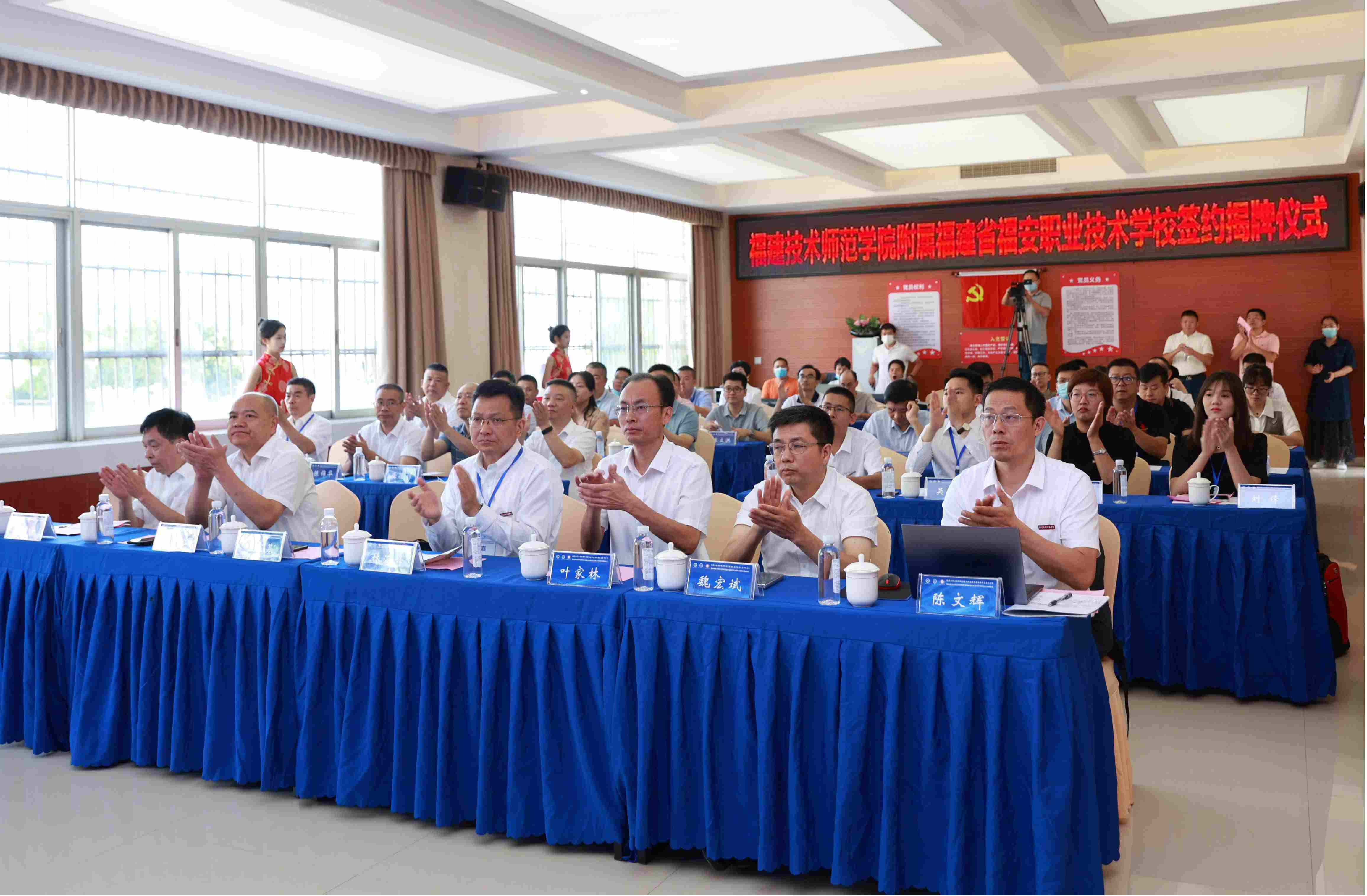 福建技术师范学院党委副书记林海峰与福建省福安职业技术学校党总支部、学校负责人李成文分别代表双方,签订合作共建协议。