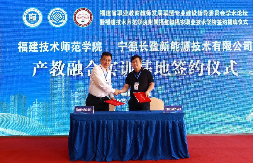 福建省职教师资培训中心与上海汽车集团股份有限公司乘用车福建分公司、青拓集团有限公司、宁德长盈新能源技术有限公司签订产教融合实训基地。