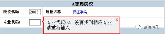 如果不是,或出现红色字体提示的“无效院校”或“无效专业”,说明填错了代号,须按正确的代码更正。考生在输入填报过程中如果有误,系统会提示以下信息: