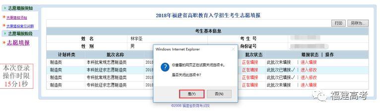 如果考生还要填报或修改,可以在15分钟后再次登陆志愿填报系统。