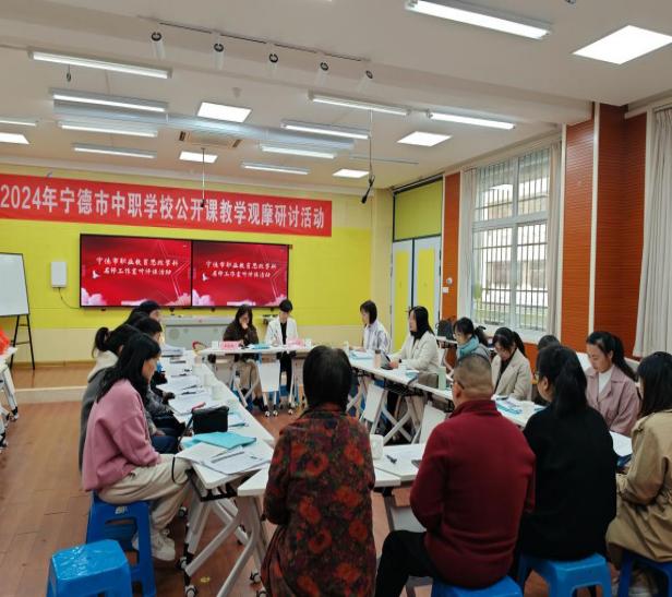 为进一步加强学校内涵建设,推进“三全育人”工作,切实提升教师课程思政建设的意识和能力,为广大教师提供学习交流平台,宁德市职成教研室于11月至12月上旬组织开展了2024年宁德市中等职业学校公开课教学观摩研讨活动,本次活动以“课程思政”为主题,贯彻落实立德树人根本任务,深入挖掘课程德育内涵,推动教师承担起“课程思政”主体责任,做好课程育人教学设计、创新教育教学方式方法,充分发挥课程的育人功能,将思想政治工作贯穿教育教学全过程,进一步发挥课堂教学的育人主渠道作用,培养适应产业需求的技术技能型人才。2024年11月27日-11月29日,福安职业技术学校承办了思想政治、数学和机电技术应用、会计事务和茶艺与茶营销等专业课程的公开课教学观摩研讨活动,内容主要包括专家讲座、教学展示和交流研讨。