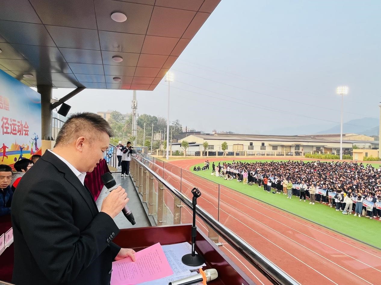 11月21日,福安职业技术学校在操场举行第38届田径运动会开幕式。校级领导班子成员、督学、工会副主席、各处室负责人以及各年段师生出席了本次开幕式。黄小刚书记为开幕式致辞,他希望全体运动员发扬更快,更高,更强的奥运精神,积极进取,努力拼搏,赛出技术水平,赛出个性风采,赛出团结友爱。将本届运动会开成一个文明,竞争,友谊,进取的盛会!