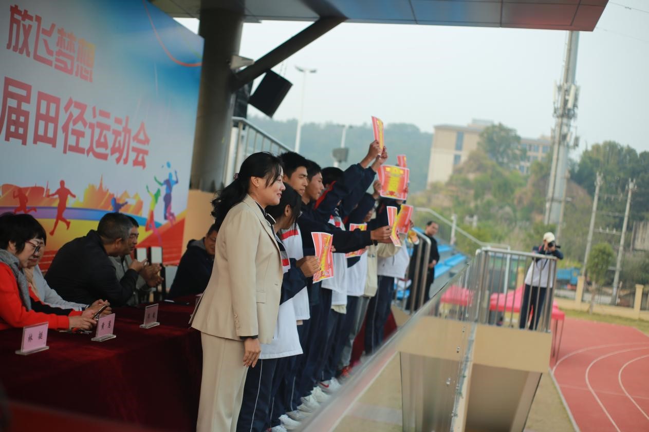 11月24日,我校在操场举行了第38届田径运动会闭幕式。校级领导班子、各处室负责人以及各年段师生参加了本次闭幕式,闭幕式由谢方军副校长主持。