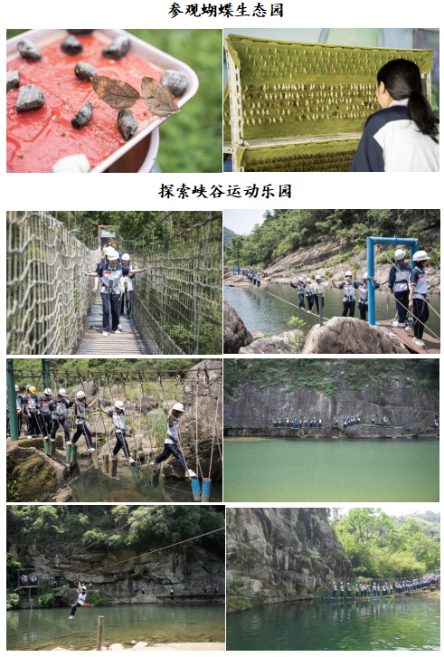 抵达福鼎赤溪村,通过参观中国扶贫第一村村情展示厅,了解赤溪村扶贫历程,同学们感受到赤溪村人民自强不息、砥砺前行的精神;走进赤溪村人民会场,观看习总书记与赤溪村民的对话视频,同学们又为习总书记对少数民族贫困地区的深切关怀而感动;参观赤溪村杜家堡古民居,同学们则沉浸在杜家堡深厚的古村落文化、杜氏家族文化和建筑文化的魅力里;参观蝴蝶生态园,同学们不仅拓宽了视野,深入了解了斑蝶、凤蝶、粉蝶等多种蝴蝶的特性和知识,还为大自然的鬼斧神工与生命的奇妙而赞叹不已;探索峡谷运动乐园,同学们在跋山涉水之中深刻体会到红军不畏艰难的精神。