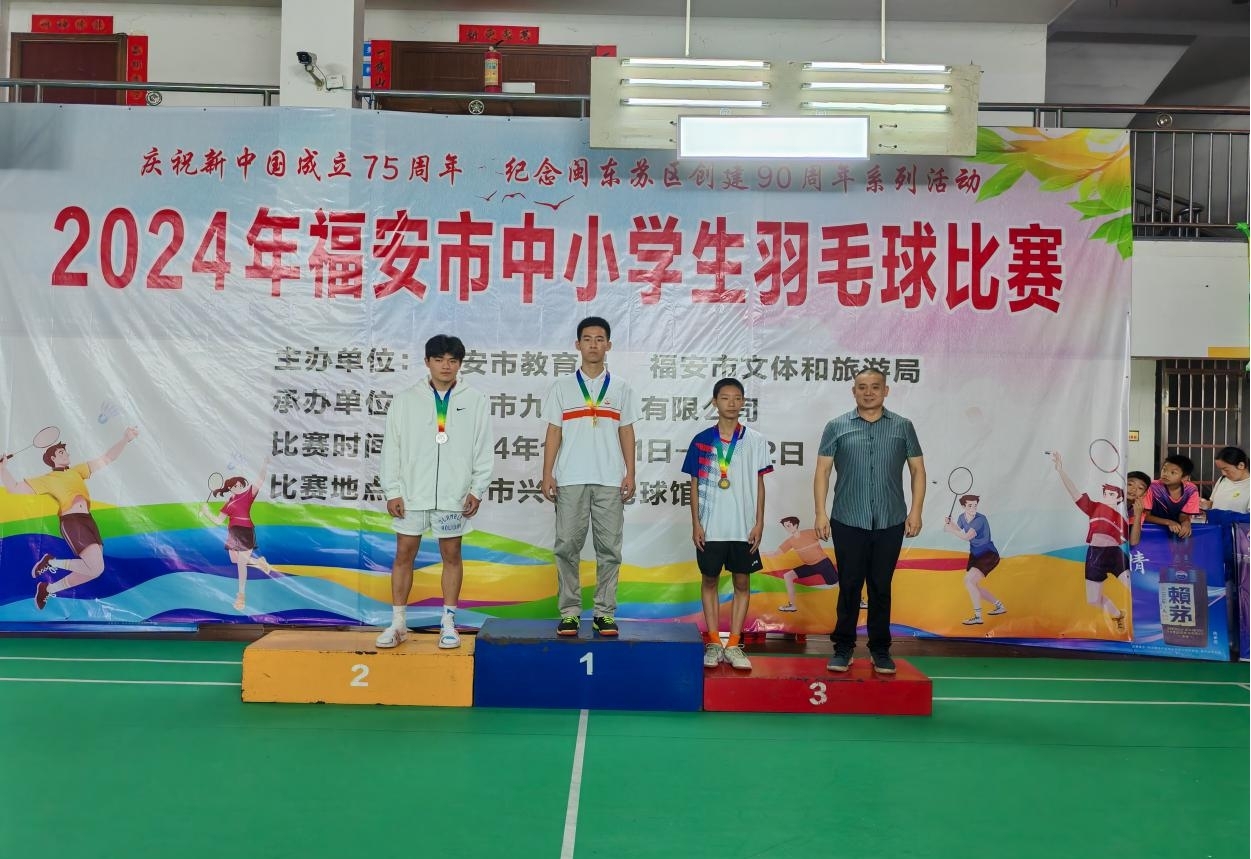 少年心怀凌云壮志,不负青春韶华行。经过长时间默默地训练与准备,福安职业技术学校羽毛球队终于迎来了备受瞩目的年度福安市中小学生羽毛球比赛。在高中组的激烈角逐中,队员们挥洒汗水,顽强拼搏,最终为学校赢得了团体一等奖的殊荣。其中,来自22级工艺美术专业的占荣丽同学因其出色的表现荣获“优秀运动员”称号,而我们的教师团队也不负众望,摘得“优秀教练员”和“优秀裁判员”的荣誉。值得一提的是,24级平面设计专业的新生黄凯文同学更是以卓越的实力,在全市40位男子单打选手中脱颖而出,荣获季军。