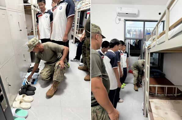9月11日晚,全体寄宿生开展内务整理活动。教官亲自示范“豆腐块”被褥的折叠技巧,新生们认真观摩后动手实践。通过“比学赶超”的内务竞赛,各寝室涌现出一批“内务标兵”,展现了新生严谨细致的生活态度和自我管理能力。