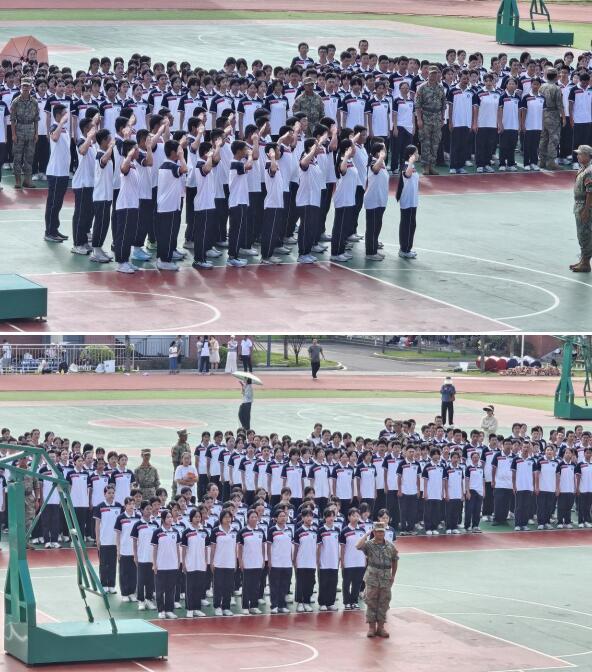 国旗护卫队迈着铿锵步伐护送国旗入场,全体师生肃立注目。谢方军副校长在致辞中强调军训对新生“立德树人”的重要意义,林国锋总教官则以“流血流汗不流泪,掉皮掉肉不掉队”的誓言激励学子勇毅前行。