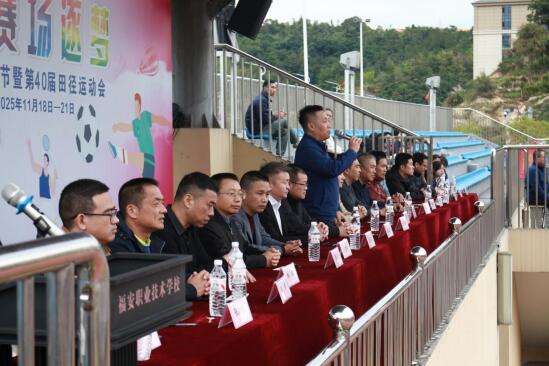 最后,在热烈的掌声中,校党总支书记黄小刚宣布:“福建省福安职业技术学校2025年体育节暨第40届田径运动会开幕!”至此,本届运动会各项赛事正式拉开战幕。