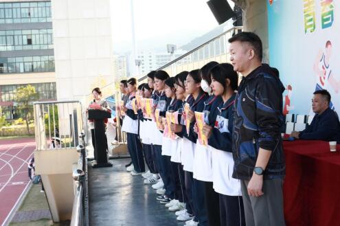 方阵表演结束后,运动员代表谢丽鑫同学与裁判员代表杨珊老师先后上台宣誓,分别表达了尊重规则、奋勇争先的决心以及公正执裁、秉公办事的原则。副校长谢方军在开幕式致辞中强调,希望全体运动员勇于拼搏,全体裁判员公平裁决,全体同学文明观赛,共同展现我校积极向上的精神风貌。