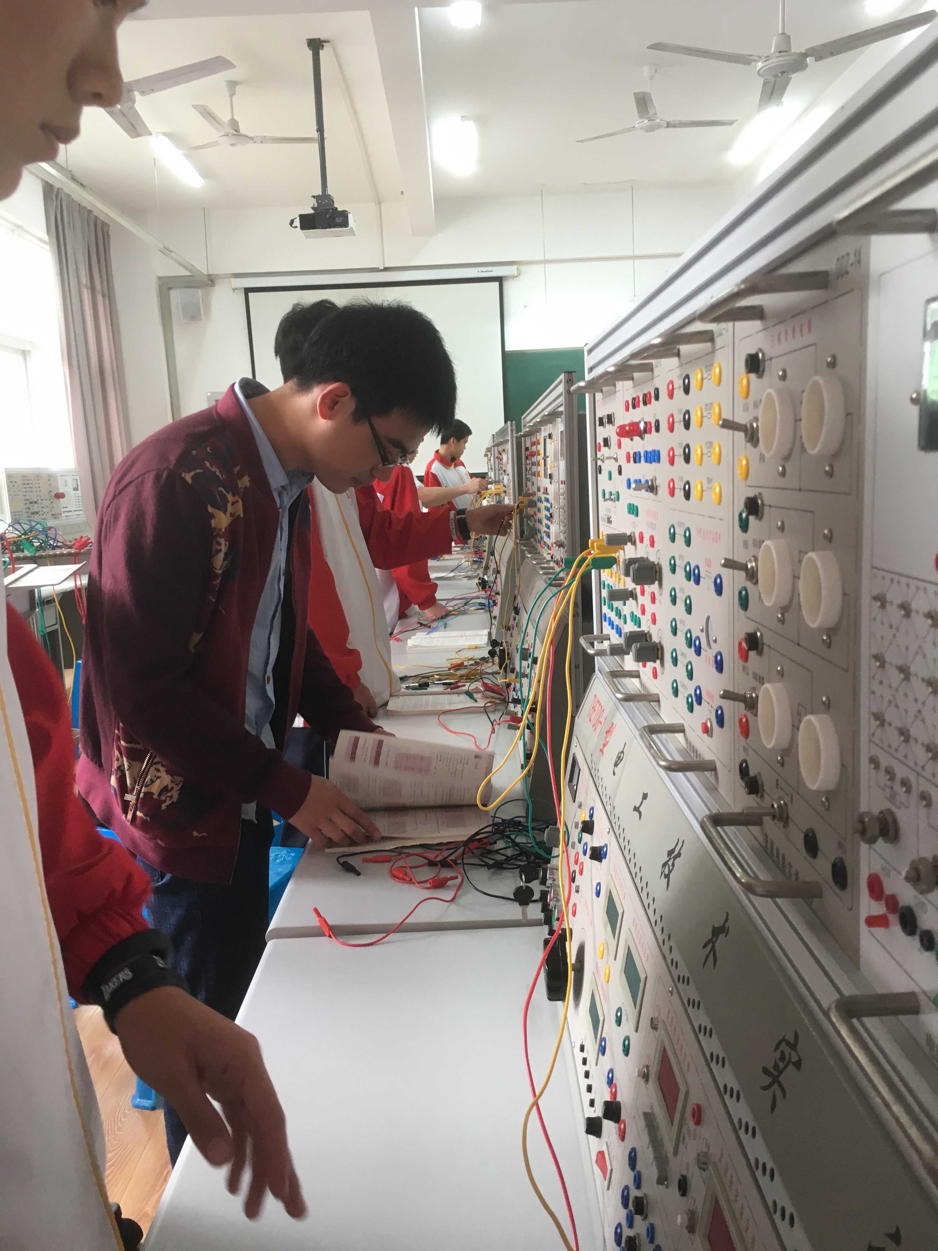 本学期2017年4月24日-2017年5月12日,16电子班、16机电班组织学生进行电工实训,本次实训主要针对电子、机电专业《电工技术基础与技能》教材中的实验进行集中实训。本次共开展了十个实训项目,其本上按照预定计划完成任务。通过本次实训学生加深了对电工基础知识的认识,对电路的理解,能用仪表测量电路中的物理量,并能很好的动手连接电路、检查电路并排除故障,能根据实训过程得出实训结果,大部分同学都掌握了对结果数据的分析方法,增强了动手能力,也巩固了所学知识。实训剪图及实训成绩如下: