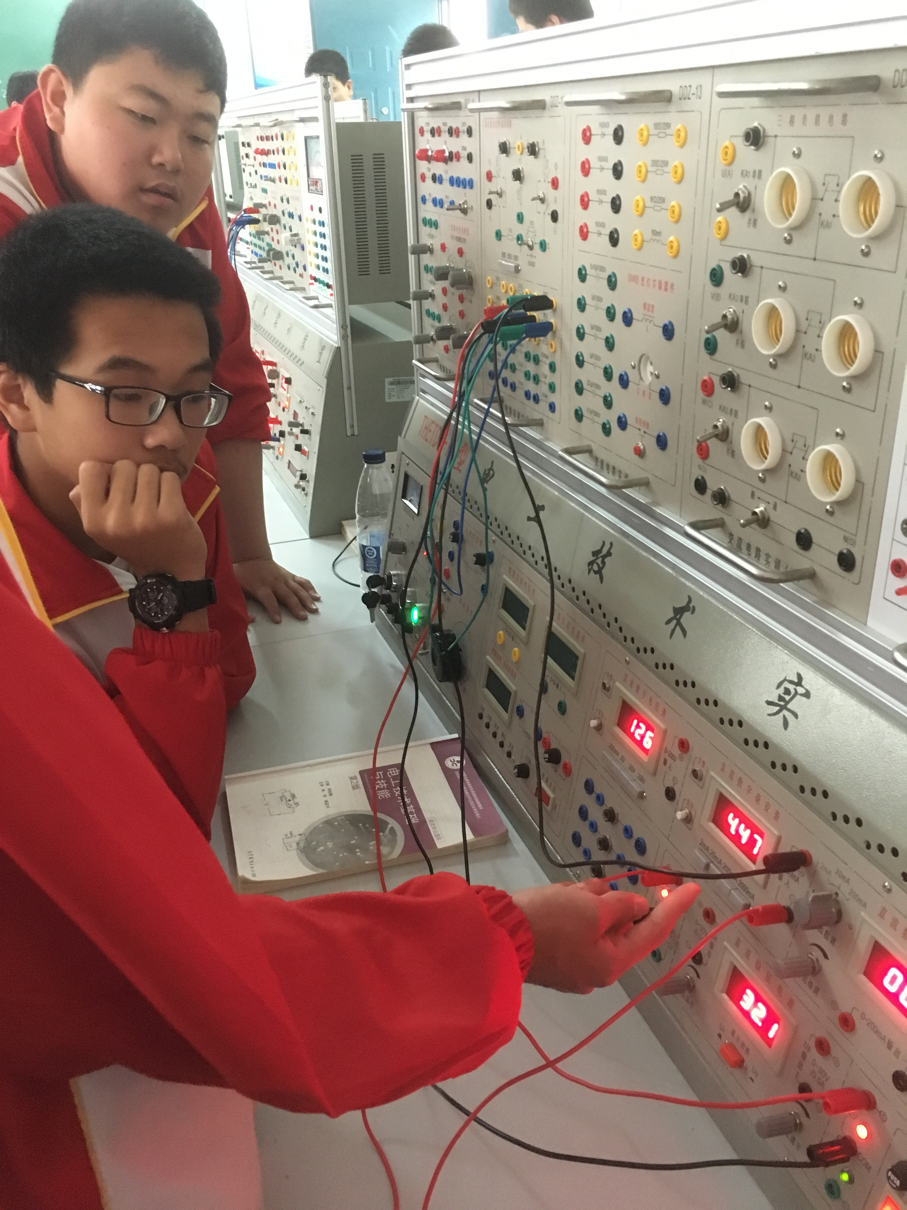 2016-2017学年第二学期16电子、16机电专业电工实训结束