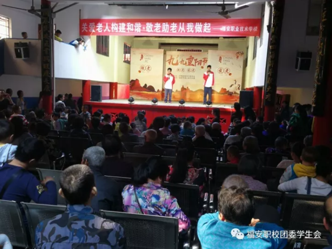 九月初九重阳节,校团委组织青年学生志愿者前往阳泉颐寿园,开展了一系列敬老活动。