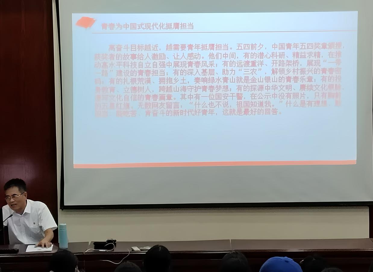 团课开始,李伟民副主席组织学习习近平在2024年“五四”青年节对广大青年寄语精神上的讲话,并讲述了习近平在新时代新征程上要求广大青年要继承和发扬五四精神,坚定不移听党话、跟党走,争做有理想、敢担当、能吃苦、肯奋斗的新时代好青年,在推进强国建设、民族复兴伟业中展现青春作为、彰显青春风采、贡献青春力量,奋力书写为中国式现代化挺膺担当的青春篇章。