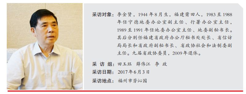 采访组: 习近平同志任宁德地委书记时,您在地委办公室工作。请您谈谈他刚到宁德时给您留下的印象。 李金贤: 习书记在福建工作17年半,我与他有比较长时间的工作交集。他担任宁德地委书记期间,我在他身边工作,任地委办公室主任、地委副秘书长。他调任福州市委书记后,我也调到省里工作,先后任省政府办公厅秘书处处长和省信访局长、省政府副秘书长。习书记当福建省长之后,对信访工作十分重视,我们打交道比较多。和习书记一起工作的那段日子,有许多美好的回忆,有些情景至今仍历历在目。 习书记刚来宁德时才35岁,是个血气方刚的年轻人。那个时候,改革开放如火如荼,发展经济是整个社会的主旋律。习书记带着在沿海特区工作的丰富经验,从厦门过来,又是中央领导同志的后代,所以大家对他期望值很高,都说:省委真重视宁德啊,派分量这么重的干部来,是我们闽东人民的福气。地委对他的吃住行作了这样的安排:在闽东宾馆腾出一个套间,使单身书记生活起居有人照顾(新婚不久的习书记独自一人到宁德上任);行署新进了两部进口小车,安排一部给他坐,司机由他自己定。这本是入情入理的安排,习书记却一一谢绝了。他说:“车辆还是用老书记退下来的小车,连原司机一起转过来就行了。我也不能住在宾馆,还是搬到机关干部宿舍住,吃在机关干部食堂就可以。”经办人员一听连忙劝道:“这可不行啊!老书记退下来的车已经跑了二十多万公里,车头在一次车祸中碰坏修理过,闽东山高路险,还是换新的比较安全吧!让您住在宾馆,主要是考虑到家属不在身边,生活不方便。”但是,习书记还是坚决不从,他说:“我们是贫困地区,不要摆阔气、讲排场,还是过紧日子好。新车就留给接待客人用,要保证客人坐得舒适安全。我是来工作的,不是来享受的,住在机关宿舍,和干部在一起工作生活,各方面才方便。”就这样,在任内,他坚持用旧车,住干部宿舍,宿舍内的床铺、家具基本都是原来用过留下来的,连司机也是吕居永老书记留下的,一直到他离开宁德赴福州上任为止。在这期间,他从不公车私用,夫人彭丽媛几次到闽东来看望他,都是自己买车票或搭便车来的。其实,这些看似平常的举动,在当时来说是很不容易做到的,那时有一种观念是政府对外的形象一定要包装,比如政府领导一定要配豪车,认为这样才能引得金凤凰,招商才容易。但他没有这样想,在当时就表现得很不一样。 习书记来宁德没几天,就搬到机关干部宿舍楼里住,与干部一道吃在机关食堂。办公室就安排在老地委大院办公楼三楼,总共只有20多平米,里外两间,外面一间摆放着两张沙发,一张茶几,用来会客;里面一间是他办公的地方,放了一张办公桌、一个书柜,虽然安装了一部老式的窗式空调,但他很少用。他来的时候,我们原本想把这间办公室重新装修一下,可他不同意,说原样就挺好,来了就直接进去办公了。 大家都没想到,这个从厦门特区来的地委书记,如此艰苦朴素,如此严于律己。大家也都觉得,跟着这样的领导干,他说什么都服气。 采访组: 听说习近平同志刚到宁德工作时,许多干部群众十分期待早日脱贫致富,希望能上一些大项目。请您谈谈他当时对发展宁德经济是怎么考虑的。 李金贤: 习书记刚来就给大家留下很好的印象,大家的积极性和信心都很足,一时求富心切,“三大战役”决战决胜的提法就被炒起来了。所谓“三大战役”,实际上是指修建福温铁路、开发三都澳、在赛岐建中心城市这三项大工程。当时社会上流行跑“部”“钱”进,习书记是北京下来的,大家就认为他往北京跑项目要钱肯定更容易。很多人都说:“这下闽东马上就要改变面貌、脱贫致富啦。” 但习书记这个人很沉稳,并没有受当时干部群众高涨情绪的影响,没有立马烧起“三把火”,而是决定先到基层调研。他花了两个月时间,跑遍了宁德9个县,还考察了浙江的乐清、苍南和温州三个地方。他跟我们说:“闽东脱贫不是那么容易呀。闽东山穷地瘦,山势呈犬牙交错,落差大,直上直下,海拔可以从1000米陡降到几十米,平原地少,山区多是挂壁梯田,田块小,群众说是‘眉毛坵’、‘斗笠坵’、‘蛤蟆一蹦过三坵’。闽东虽然山峦起伏,但林木也少,光秃秃的,没有什么像样的矿产,资源比较贫瘠。沿海四个县也多半是山区,海岛缺电缺水,灾害频繁。所以,我们不能脱离这些实际谈脱贫,不能寄希望于一下子抱个‘金娃娃’。” 采访组: 看来习近平同志在调研中发现了很多困难和问题。 李金贤: 的确,习书记在调研中看到了闽东真正的问题所在,最主要的就是受客观条件制约。首先是自然地理条件恶劣,一旱一涝是常态,老百姓称之为“一场大雨哗啦啦,三天没雨干巴巴”。沿海台风暴雨,一年都要来好几趟,山洪暴发、山体滑坡是常有的事。其次是交通不便。宁德地区关山阻隔,到每一个县都要翻一座又陡又长的岭,进出唯一的公路是104国道,坡陡路窄,险象环生,艰难异常。从福州往宁德走,就要翻越罗源飞鸾岭,坐车一上一下,至少就得一个钟头。到霞浦有杨梅岭,到福鼎有金钗岭,到福安有财洪岭、眉洋岭,到古田有牛岭,到寿宁还有车岭和九岭。如果到周宁县,还要翻过愁岭。愁岭这个地方真是名副其实啊,道路又窄又陡,弯多崎岖,从车里往外边看,处处是悬崖峭壁,就好像坐的不是汽车,而是飞机,非常可怕,真可谓一见就“发愁”。传说