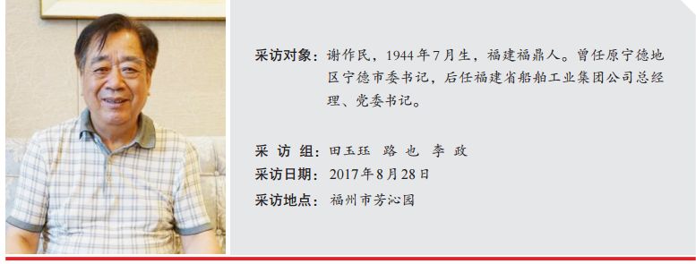 采访组:福建是沿海省份,船舶工业是福建的支柱产业。您后来离开宁德,出任省船舶工业集团公司总经理。请您谈谈当时船舶集团的情况,以及习近平同志对福建船舶工业的关心。