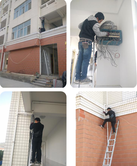电信青年志愿者义务清理教学楼门前墙壁管线扣