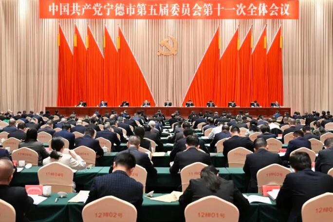 中国共产党宁德市第五届委员会第十一次全体会议决议(2025年12月11日中国共产党宁德市第五届委员会第十一次全体会议通过)。 中国共产党宁德市第五届委员会第十一次全体会议,于2025年12月11日召开。 出席会议的有市委委员28人,市委候补委员6人。市纪委常委和有关方面负责同志,在宁党的二十大代表、省第十一次党代会代表和市第五次党代会代表中的部分专家学者等列席会议。 全会由市委常委会主持,市委书记张永宁讲话。 全会深入学习贯彻党的二十届四中全会精神和习近平总书记在福建考察时的重要讲话精神,以及省委十一届九次全会精神,听取和讨论了张永宁受市委常委会委托所作的工作报告,审议通过了《中共宁德市委关于制定宁德市国民经济和社会发展第十五个五年规划的建议》。张永宁就《建议(讨论稿)》向全会作了说明。 全会充分肯定了今年以来市委常委会的工作。一致认为,市委常委会以习近平新时代中国特色社会主义思想为指导,全面贯彻落实党的二十大和二十届历次全会精神,深入学习贯彻习近平总书记在福建考察时的重要讲话精神,深刻领悟“两个确立”的决定性意义、坚决做到“两个维护”,聚焦“牢记嘱托、谱写篇章”主题主线,持续深化拓展“深学争优、敢为争先、实干争效”行动,全力以赴稳增长,推动“两创”深度融合,深化改革开放,念好新时代“山海经”,大力传播“闽东之光”,加强社会主义民主法治建设,保障改善民生,纵深推进全面从严治党,全方位推动高质量发展,奋力谱写“宁德篇章”取得更大实效。 全会高度评价“十四五”时期宁德发展取得的重大成就。一致认为,五年来,市委坚持以习近平新时代中国特色社会主义思想为指导,深入贯彻习近平总书记重要讲话重要指示批示精神,全面落实党中央和省委决策部署,团结带领全市人民迎难而上、砥砺前行,经受住世纪疫情严重冲击,有效应对一系列重大风险挑战,奋力谱写“宁德篇章”取得显著成效,综合实力跃上新台阶、产业发展实现新突破、城市面貌得到新提升、乡村振兴展现新图景、改革开放形成新优势、“闽东之光”焕发新光彩、民生福祉达到新水平、美丽宁德彰显新颜值、管党治党取得新成效。这些重大成就,从市域层面充分印证了“两个确立”的决定性意义,生动诠释了习近平新时代中国特色社会主义思想的真理伟力和实践伟力。 全会指出,“十五五”时期是我国基本实现社会主义现代化夯实基础、全面发力的关键时期,是全省奋勇争先、再上台阶的关键时期,也是宁德拓展优势、聚力协调的关键时期。一方面,必须以习近平新时代中国特色社会主义思想重要孕育地和实践地的政治优势为引领,以开放包容的人文优势为纽带,以天生丽质的生态优势为底色,以全球领先的“两新”产业优势为根基,以高能富集的创新优势为动力,以绿色硬核的清洁能源优势为支撑,协同赋能、链式拓展,乘势开启高质量发展新一轮增长周期;另一方面,必须深入践行新发展理念,聚力协调、补短强弱,全力破解沿海与山区发展不平衡、产业与城市融合不充分、经济与民生衔接不紧密、二产与三产协同不高效等突出矛盾问题,努力实现更加协调、更加普惠、更可持续的发展。 全会强调,“十五五”时期宁德经济社会发展,必须坚持马克思列宁主义、毛泽东思想、邓小平理论、“三个代表”重要思想、科学发展观,全面贯彻习近平新时代中国特色社会主义思想,深入贯彻党的二十大和二十届历次全会精神,全面落实习近平总书记对福建、对宁德工作的重要讲话重要指示批示精神,传承弘扬习近平总书记在宁德工作期间开创的重要理念和重大实践,统筹推进“五位一体”总体布局,协调推进“四个全面”战略布局,完整准确全面贯彻新发展理念,积极服务和深度融入新发展格局,坚持稳中求进工作总基调,坚持以经济建设为中心,以全方位推动高质量发展为主题,以改革创新为根本动力,以满足人民日益增长的美好生活需要为根本目的,以全面从严治党为根本保障,推深做实“1571”策略体系,推动经济实现质的有效提升和量的合理增长,推动人的全面发展、全体人民共同富裕迈出坚实步伐,奋力谱写全面建设社会主义现代化国家的宁德篇章,确保基本实现社会主义现代化取得决定性进展。 全会指出,“十五五”时期宁德经济社会发展把握以下要求:必须用好习近平新时代中国特色社会主义思想重要孕育地和实践地独特优势,必须坚决扛起全省高质量发展的重要增长极使命担当,必须始终坚持“把心贴近人民”,必须以改革开放总揽经济社会发展全局,必须大力弘扬“弱鸟先飞、滴水穿石”精神。 全会提出了“十五五”时期宁德经济社会发展的主要目标:经济综合实力更加雄厚,海湾城市能级更加强劲,现代化产业体系更加完善,共同富裕基础更加扎实,绿色低碳发展更加显著,“闽东之光”影响更加深远,人民群众生活更加美好。在此基础上再奋斗五年,到二〇三五年实现全市经济实力、科技实力、综合实力大幅跃升,人民生活更加幸福美好,在基本实现社会主义现代化中走在前列。 全会提出,打造现代海湾城市,激活“宁德篇章”的动力引擎。深入践行“三大梦想”,一体推进“港、产、城”联动发展,不断提升城市能级和宜居水平,优化城市空间布局,培育高水平海湾经济,提升港口功