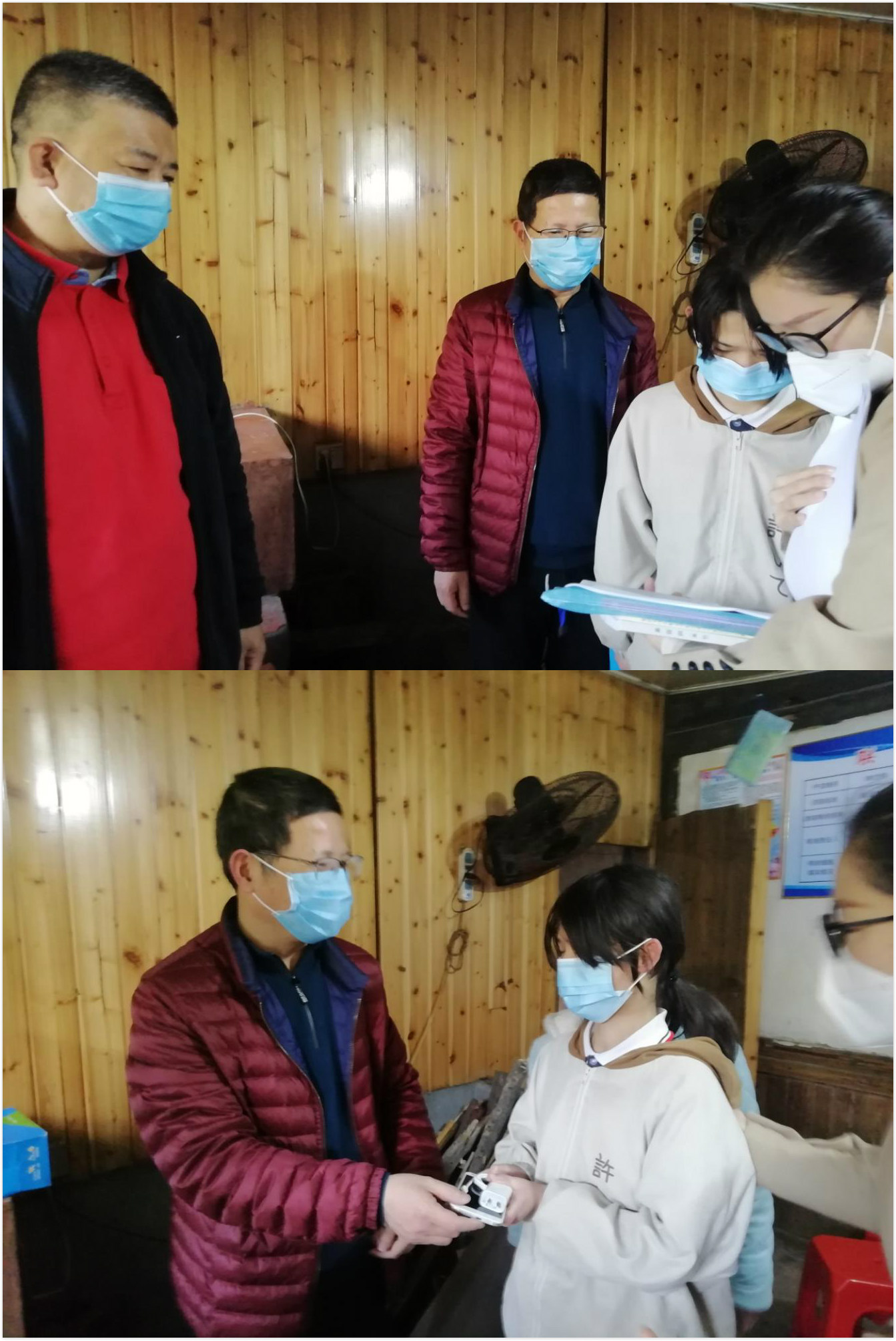 赵斌校长、陈强副校长等一行到了学生家中,为在家的贫困生送去学习所需教材和若干个口罩,了解学生在家线上学习情况和学生学习、生活中遇到的困难。赵校长还代表学校给贫困生每人送去手机一部,让学生能更好地在家上网学习,并勉励学生认真学习,再接再厉。老师们针对学生在居家线上学习期间遇到的学习困惑进行答疑解惑。