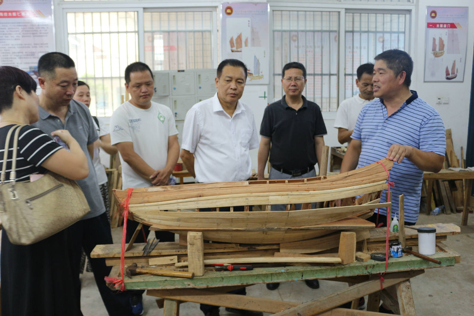 随后,调研组一行参观了福安市级非物质文化遗产保护项目传统木帆船制作技艺代表性传承人郑文祥老先生在学校的工作室和示范校船舶实训室。
