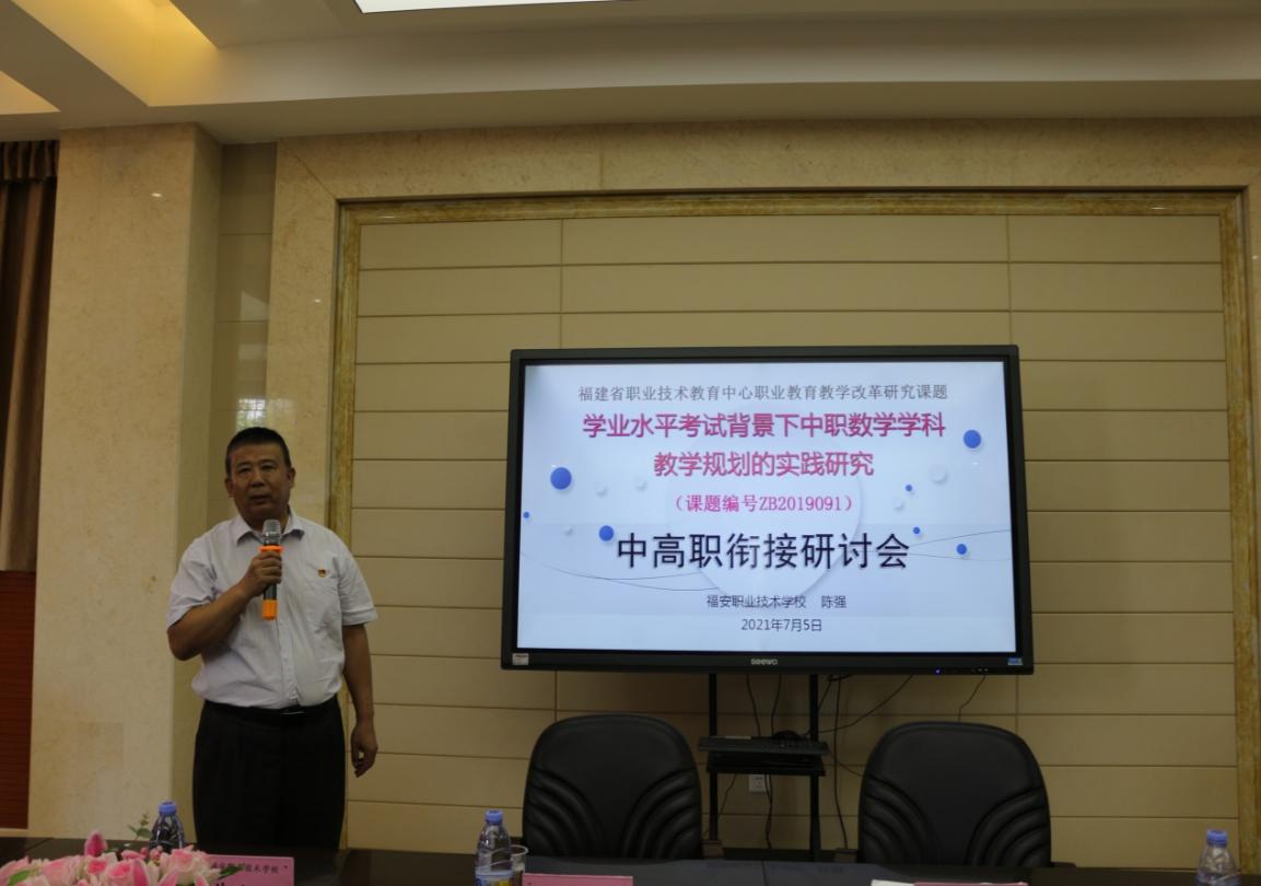 我校副校长陈强在介绍学业水平考试背景下中职数学学科教学规划的实践研究和中高职文化课衔接的情况