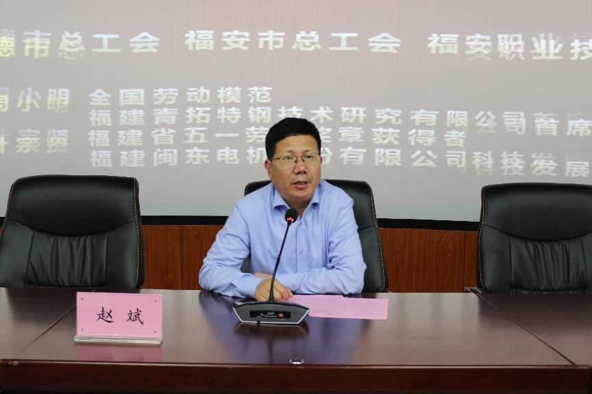 活动邀请全国劳动模范、八闽工匠人物、福建青拓特钢技术研究有限公司首席工程师周小明与福建省五一劳动奖章获得者、福建闽东电机有限公司科技发展科科长叶宗贤到我校宣讲。福安市总工会党组书记、常务副主席苏振铃,权益保障和经济工作部部长李菊梅出席活动,校党总支部书记、校长赵斌,工会主席林建书及200多名师生参加活动。