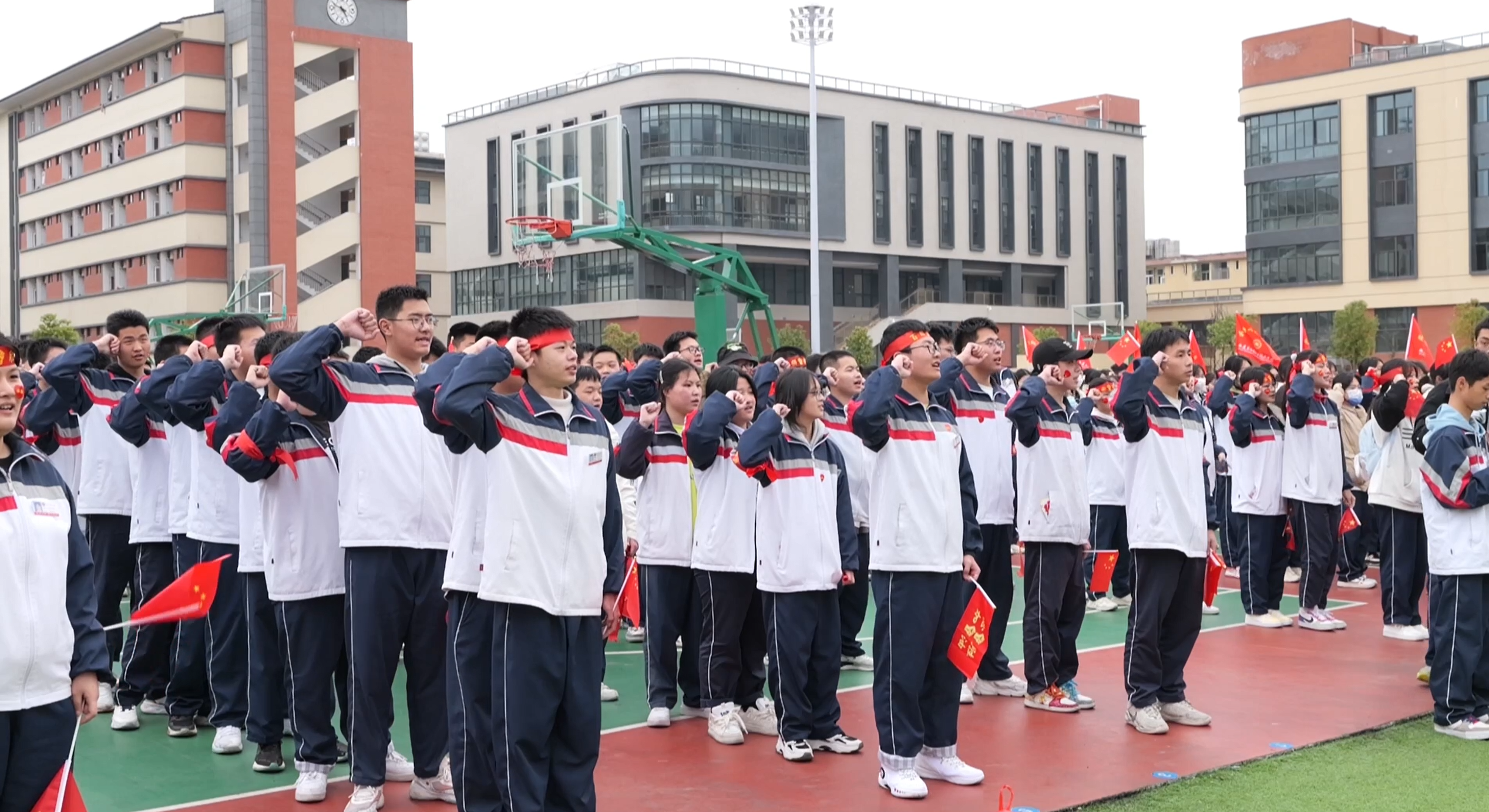 师生集体宣誓环节,在教务处主任林挺的带领下,全体师生举起右拳,目光坚定,庄严宣誓。一句句铿锵有力的誓言,表达了职校师生迎战2024年学考的信心和奋战到底的决心。