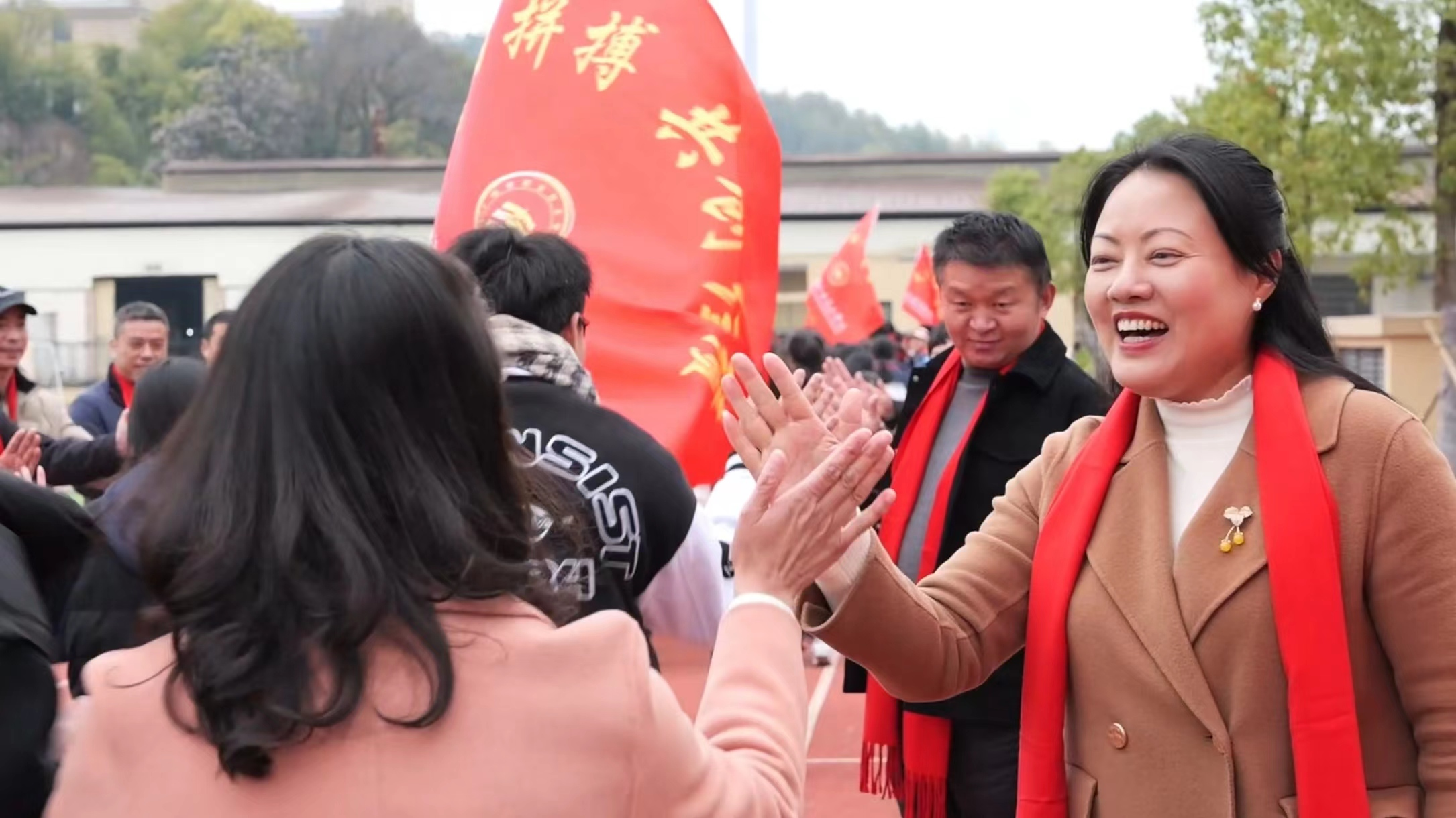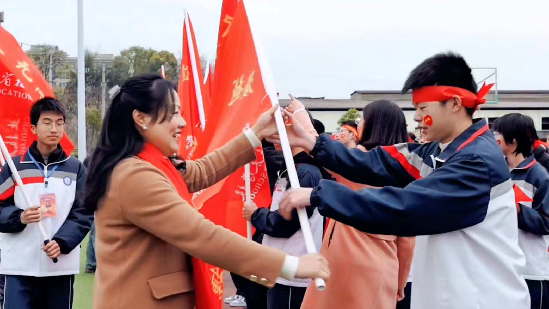 授旗仪式上,黄小刚书记和曾柳娟校长为各班授旗,将使命与荣耀传递至各班,用旗帜谱写学考雄壮的凯歌。