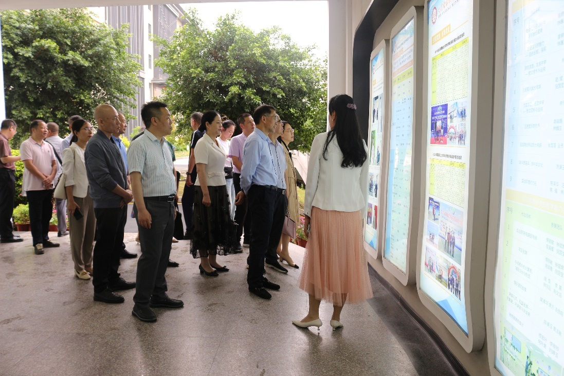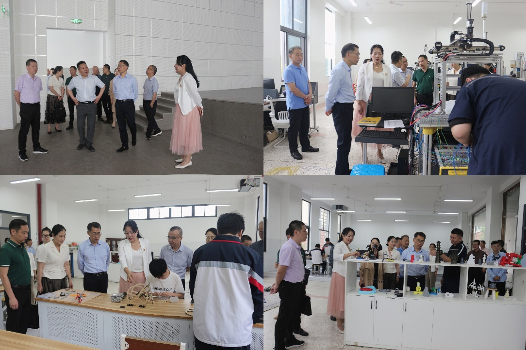 调研组一行走访校园,听取黄小刚书记和曾柳娟校长关于学校办学情况汇报,参观学校新扩建的学生宿舍楼、田径场,走进学校的实训室,了解学生实训情况,充分肯定对学校的实训管理和成效。