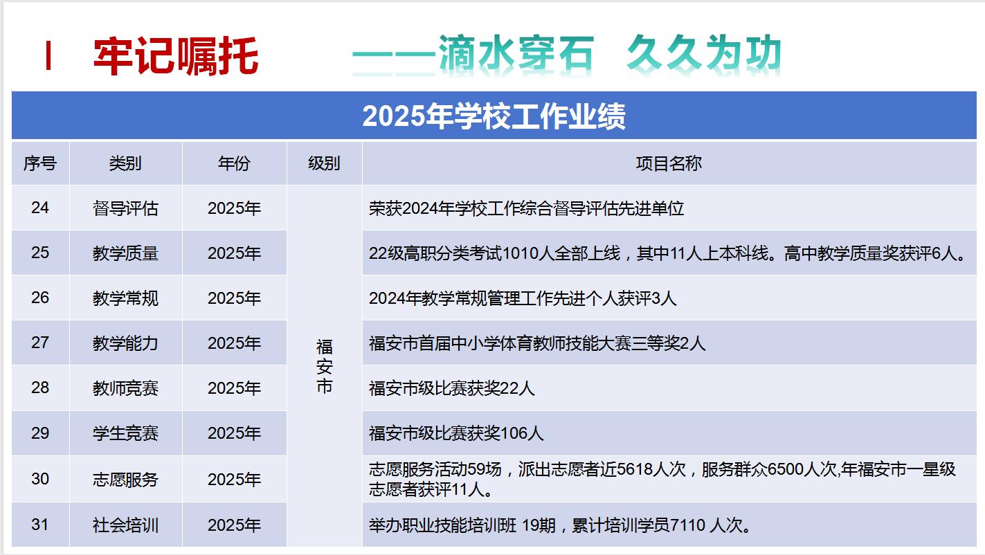 此次期末工作会议,既是对 2025 年学校工作的全面总结,更是对新学年发展的动员部署。全体教职工纷纷表示,将以此次大会为契机,把会议精神转化为工作动力,牢记 “为党育人、为国育才”的使命,以更加饱满的热情、更加务实的作风,投身到学校教育教学工作中。相信在全体福安职校人的共同努力下,学校定能在国家级优质中职学校创建的道路上稳步前行,为区域经济社会发展培养更多优秀技术技能人才,书写职业教育发展的崭新篇章!